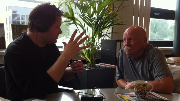 Foto: Hans in gesprek met Barry McGuire 2013