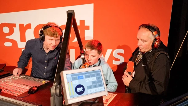 Daan is onder de indruk van Milans enthousiasme. “We worden collega’s dus hè,” zegt hij lachend. Milan knikt trots! Zijn grote wens? “Radio-dj worden bij Groot Nieuws Radio.” Daan twijfelt geen seconde. “Laat het nou zo toevallig zijn dat wij hier een studio hebben. Volgens mij moet je het gewoon gaan doen!”